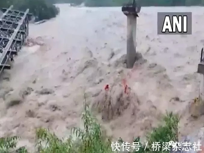 印度,10月17日,北部阿坎德邦大雨冲走当地在建桥梁。